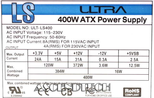 Ultra ULT-LS400 400 Watt Power Supply