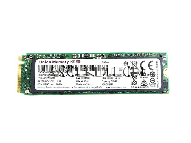 Lenovo Union Memory AH640 RPITJ512VME2OWD 512GB PCI Express 3.0 x4 NVMe M.2 2280 Internal SSD Solid State Drive SSS0W86206 8SSSS0W86206.