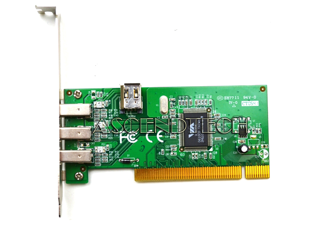 VIA VT6306 3+1 Port PCI FireWire Controller PCI Card. Via meets the current and future demands of high-performance, power embedded computing, making it ideal for communications, transaction terminal, interactive client, industrial automation applications, as well as for standard home use.