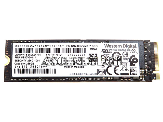 Lenovo Western Digital PC SN730 SDBQNTY-256G 256GB TLC PCI Express 3.0 x4 NVMe M.2 2280 Internal SSD Solid State Drive SSS0L24774 8SSSS0L24774.